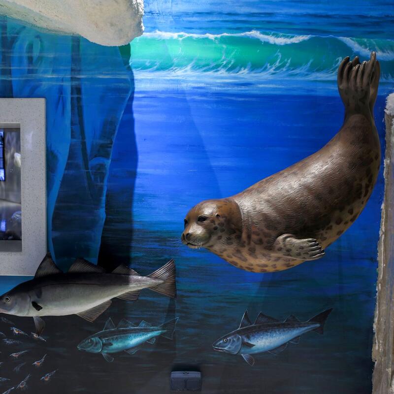 Экспозиция «Полярный мир» воссоздает атмосферу Арктики и Антарктики, показывает уникальность их животного мира, а также рассказывает о роли России в освоении полярных широт.