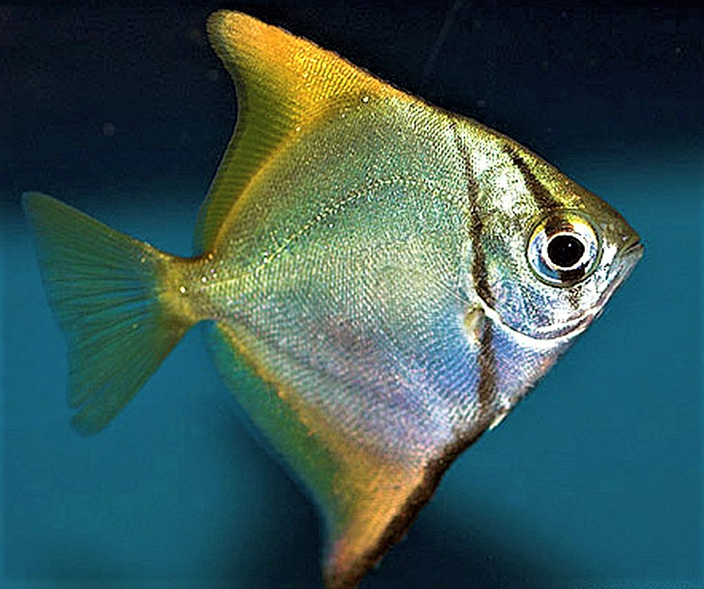 Ромбическая скумбрия и одиночный серебряный палец – так звучат в дословном переводе с латыни первоначальное – Scomber rhombeus – и современное – Monodactylus argenteus – научные названия тропической рыбки, серебряного монодактила Monodactylus argenteus.