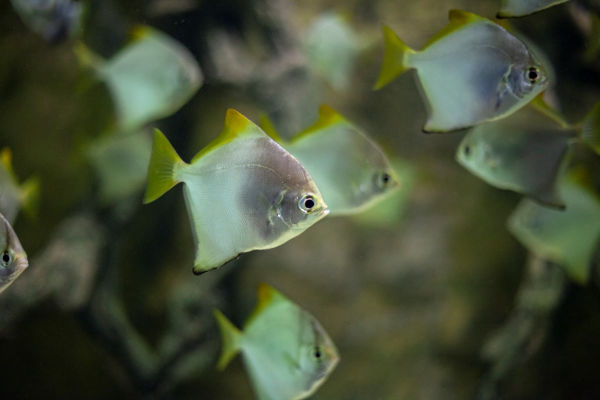 Посмотреть на серебряных монодактилов можно в аквариуме «Океанская бездна», расположенном на выходе из экспозиции «Тропические моря».