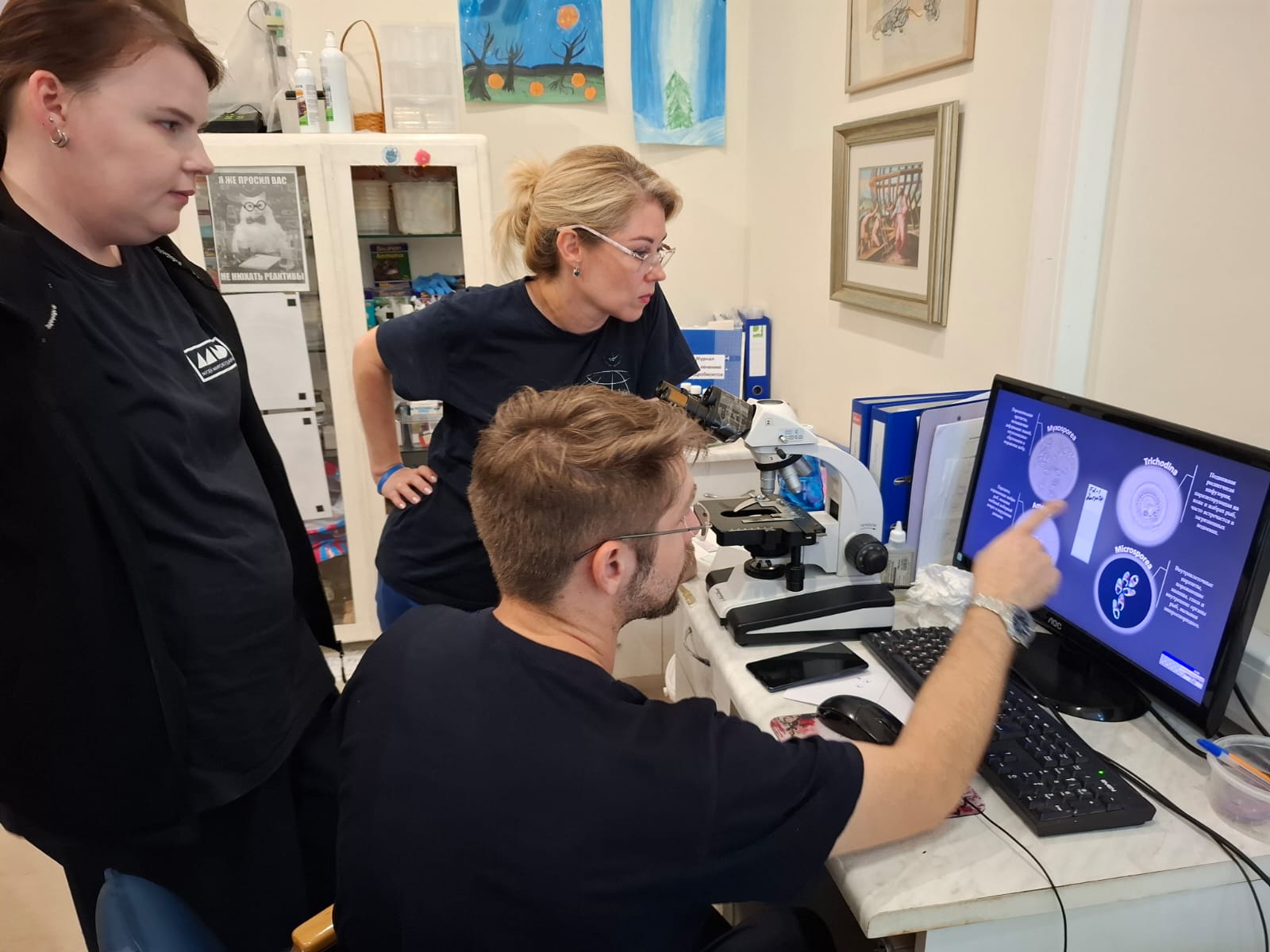 — Для меня это была очень интересная и в то же время понятная задача – организовать процесс с нуля, — рассказал Артём Степаньков. — Формирование базы гидробионтов, ведение их учёта – всем этим я занимался и в Приморском океанариуме. С коллегами из Калининграда знаком давно, поэтому легко влился в их коллектив, хотя и всего на одну неделю. Результатом поездки доволен: за время нахождения в центре помог настроить микроскоп в лаборатории, скомплектовать переносной набор для взятия и транспортировки мазков гидробионтов. Также вместе с коллегами отработали технику взятия соскобов с поверхности рыб и подготовку проб для микроскопических исследований, что необходимо для оперативного выявления возбудителей заболеваний животных. И это только часть работы, ведь наладить работу ихтипатологической службы — дело непростое, нужны научные знания и опыт.