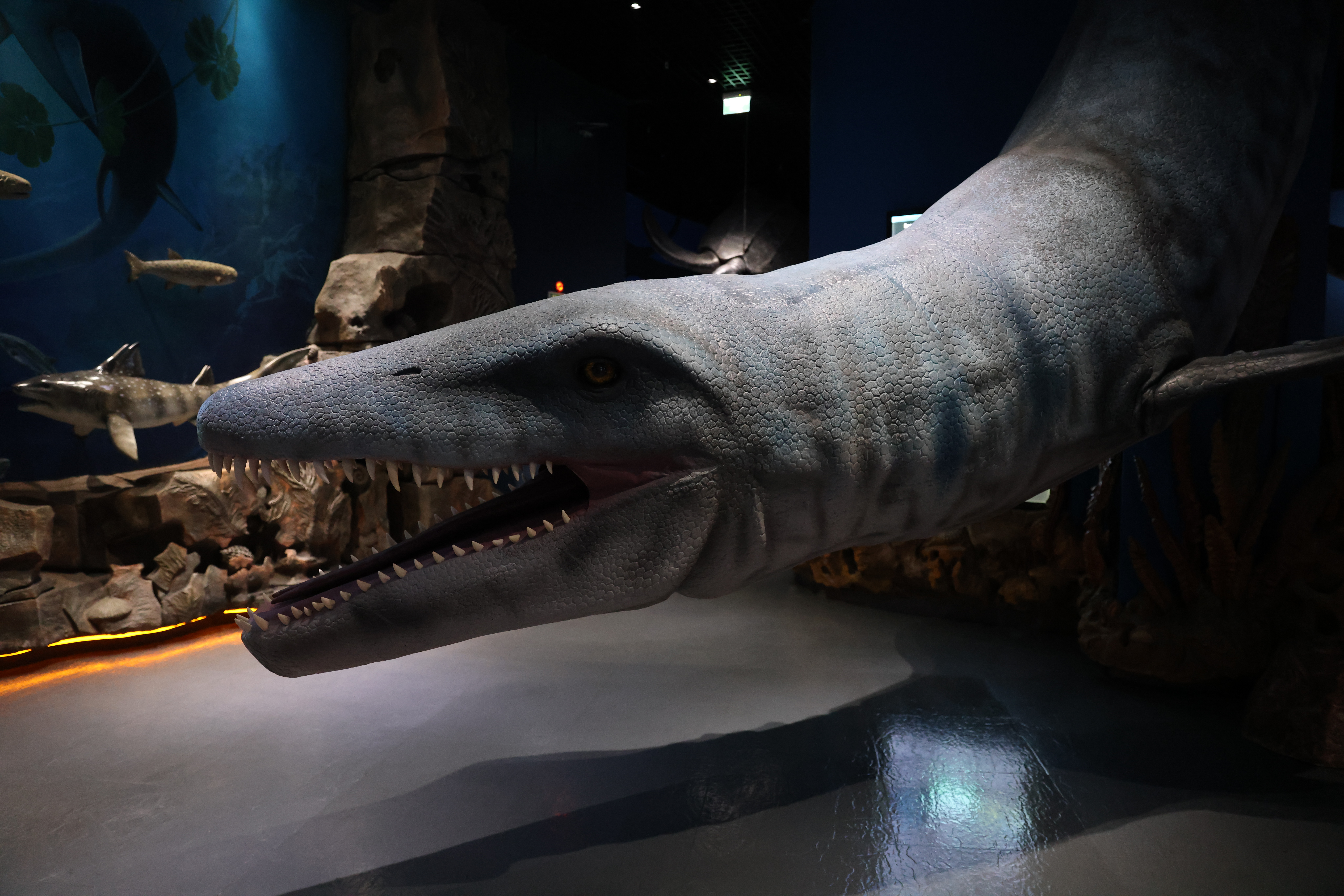 В уходящем году экспозиции пополнялись не только живыми обитателями. «Эволюцию жизни в океане» несколько месяцев назад украсила новая усовершенствованная аниматронная фигура морской рептилии эпохи позднего мезозоя — мозазавра. Экспонат изготовлен с учётом рекомендаций специалистов-палеонтологов.