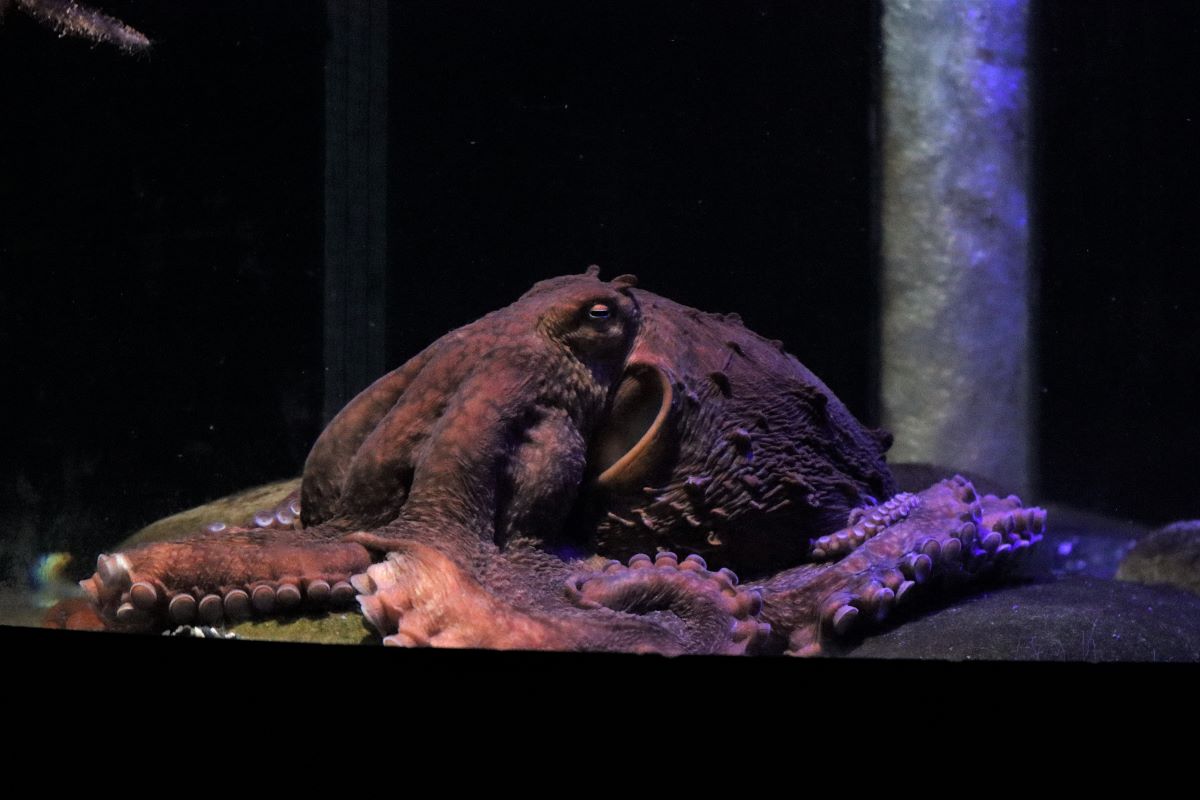 Это животное поражает не только своими размерами ─ о его сообразительности ходят легенды. Не зря в Японии он считается символом гибкости и преодоления препятствий. То, что эти животные, действительно, сообразительны и изворотливы, подтверждают и биологи. Например, именно эти качества одного из головоногих обитателей Приморского океанариума стали основной причиной смены его места жительства: из научно-адаптационного корпуса (НАК) он переехал в "зал осьминогов" главного корпуса, где крышки аквариумов накрепко закручиваются.