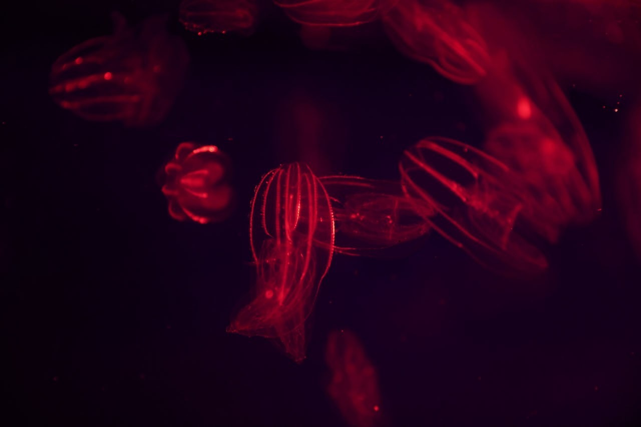 Гребневики — особый тип животных, внешне напоминающих медуз, но с точки зрения эволюции так же далеко отстоящий от них, как от человека. Это единственный многоклеточный организм, который плавает с помощью ресничек, как всем известная инфузория туфелька. Но последнюю можно рассмотреть только в микроскоп, а размеры необычных желетелых варьируют от нескольких миллиметров до полутора метров. В зале медуз Приморского океанариума сейчас содержится один вид гребневиков, Bolinopsis mikado, вырастающих до 10 сантиметров в длину. Ещё одна выдающаяся особенность этих животных, привлекающая к ним всеобщее внимание — биолюминесценция. Это очень красиво: создаётся впечатление, что по хрупким тельцам пробегают электрические разряды.