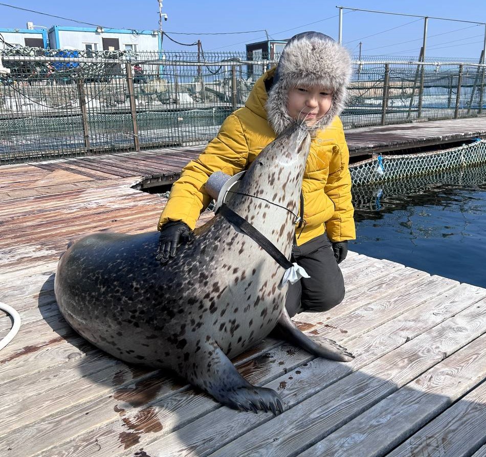 В этот день, 6 марта, пятнистый тюлень, рождённый в Приморском океанариуме, по традиции принимает поздравления тренеров, получает подарки и любимое лакомство – рыбный торт.