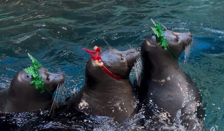 Во время новогодних праздников трио байкальских нерп порадовало гостей Приморского океанариума новыми элементами программы: они водили хоровод вокруг миниатюрной плавучей ёлочки и танцевали ламбаду. Невозможно было без улыбки смотреть, как эти милые «булочки», держа друг друга за спинки, проходят в танце вдоль смотрового стекла! А ещё они научились прыгать из воды за мячом и подбрасывать его носиками — совсем как дельфины.