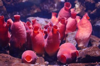Впервые в Приморском океанариуме зафиксировано размножение асцидий в искусственной среде. Не так давно на дне круглого аквариума с катранами в экспозиции «Берингово и Охотское моря» биологи сделали неожиданную находку: на одном из камней появились красные точки, которые с течением времени увеличивались, пока не стало понятно — здесь подрастают пурпурные асцидии Halocynthia aurantium. Это тем более удивительно, что в настоящее время этот вид в экспозиции, посвященной дальневосточным морям, не экспонируется. Дело в том, что в прошлом году из-за очень жаркого лета море прогревалось до 25°С даже в акватории острова Русский, поэтому получить этих беспозвоночных было сложно — они предпочитают холодные воды.