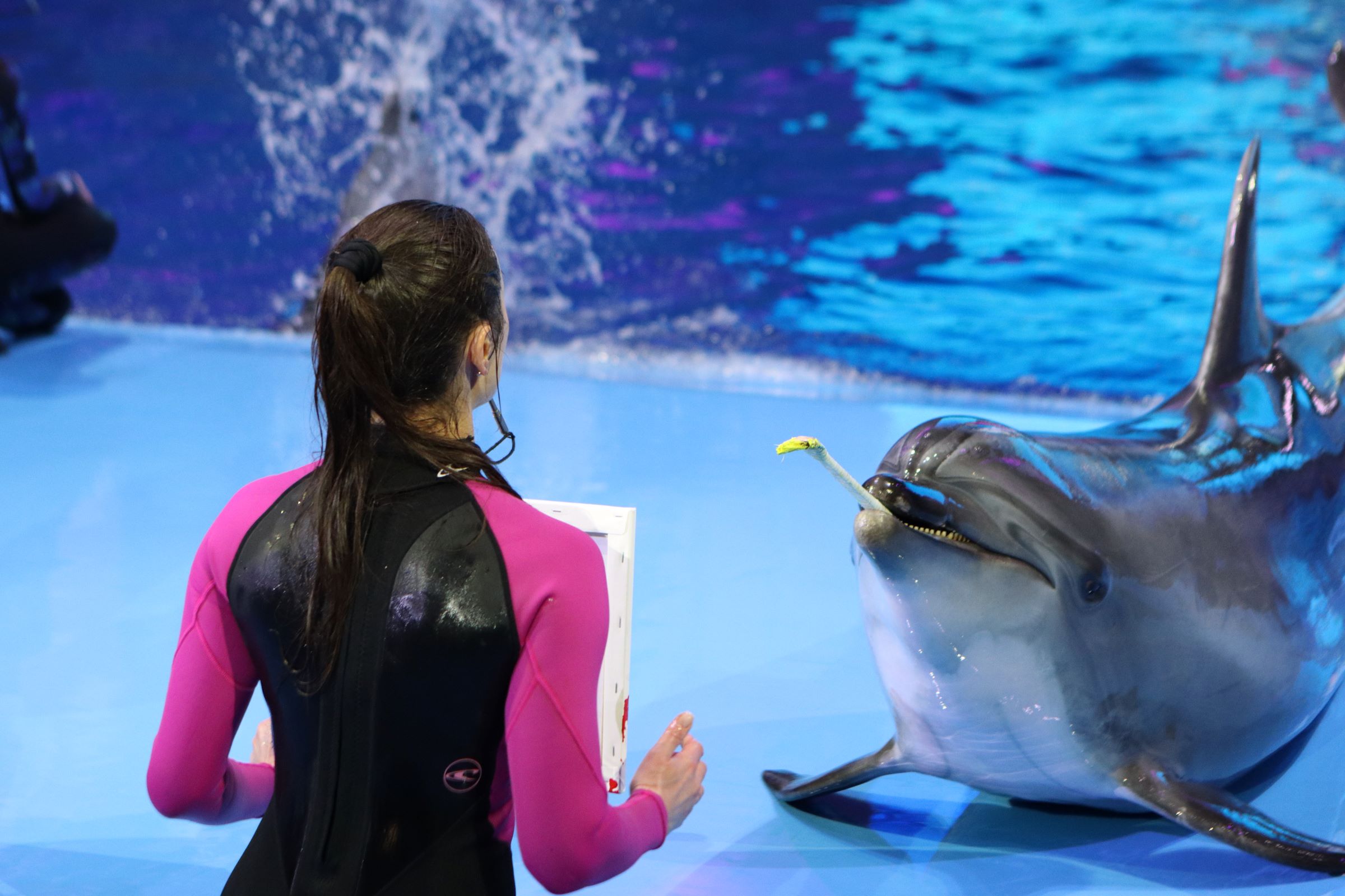 Дальневосточные афалины — одни из первых "участников" Тотального диктанта на площадке Приморского океанариума.